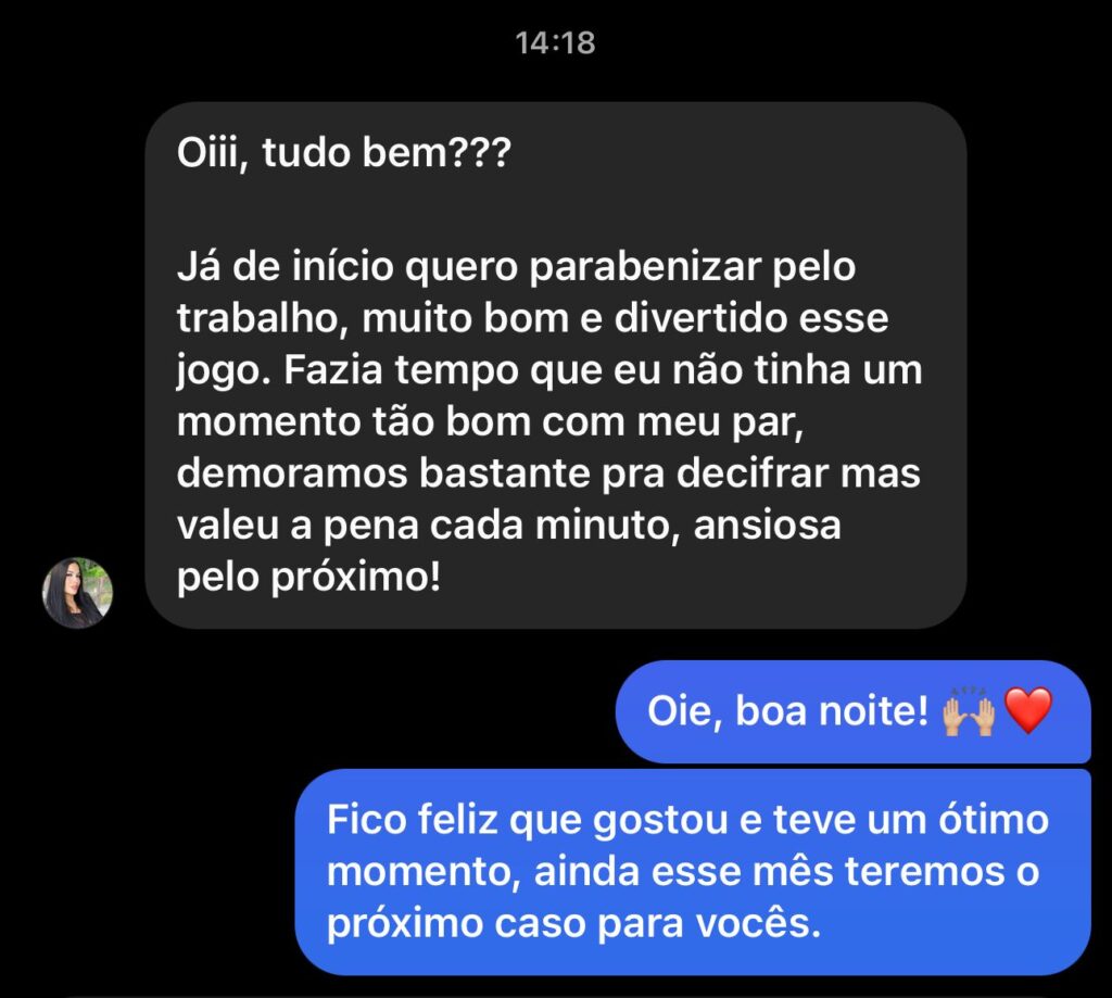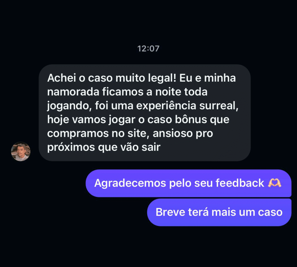 Com as evidências reunidas, elimine os suspeitos até identificar o principal. Envie sua conclusão e prove que você solucionou o caso.